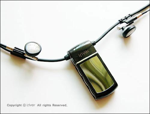 N10采用项链式设计,耳塞挂绳一体设计,包括锂电池仅重28.5克,显示屏为16级灰度蓝色OLED显示屏,这也是iRiver首款采用OLED显示屏的机型。N10正面整个为黑色镜面,在显示屏关闭的时候整体呈黑色,光可鉴人,凸现与众不同的高贵品质。