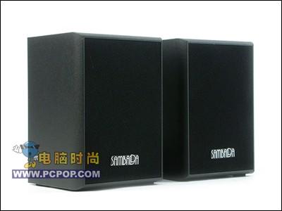 卫星音箱黑色的面罩上贴有“桑巴达”的英文logo,频率响应为150Hz-20kHz,尺寸为99mm×160mm×110mm。比较方便摆放。