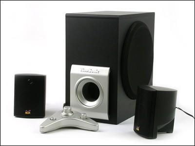 这款SP2102V是一套标准的2.1组合,稳重的黑色配上一点银色显得不失活泼,整体造型很好