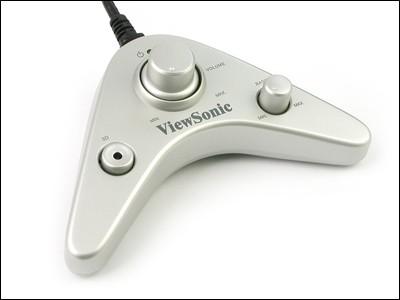 这是SP2102V的线控,是不是有点像游戏机的手柄呢?这种造型的线控在现在音箱产品中确实很少见到,不过这也正体现出了优派“感受优派大不同”的理念,而且在功能上它也毫不逊色,除了提供常用的主音量调节和高低音调节外,左边还有一个3D音效的开关,同时顶部还集成了耳机插孔,显然这样可以免去用户到机箱后面去连线的痛苦。