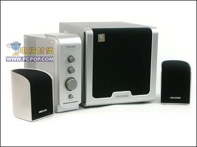 梵高FC360是一款采用2.1结构的音箱产品,外观方面采用了银白色的箱体加黑色的布面网罩,看起来俨然一副高端产品的样子。比较特别的是,这款产品采用了麦博首创之独立功放高保真系统,即将功放及控制部分从低音炮箱体中分离出来,这样可以有效的消除振动,避免过热及磁电干扰导致的音频失真。