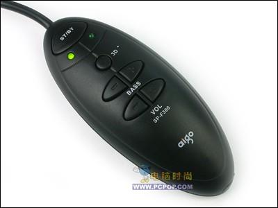 背部巨大的散热片可以保证将60W有效功率所产生的热量及时扩散出去,而下方除了开关及常见的音频线接口之外,还有一个类似串口的插头,这是为了连接线控使用的。