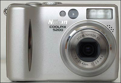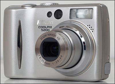 外观:尼康Coolpix 5200使用亮银色金属机身,全金属银色镜头,完美搭配 。银色金属机身表现出坚固,同时也显得很时尚;它的体积尺寸为88×60×36.5mm,包括电池时的重量为180克,超薄、轻巧的机型设计,是一款非常适合时尚女性使用的DC。