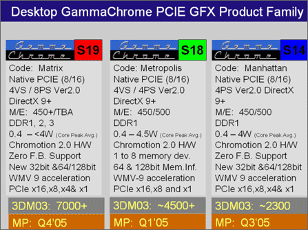 VIA旗下图形事业部门S3在零售市场上沉寂了3年后,今年上半年携S8显卡重新杀回零售市场,虽然S8的速度还不能让游戏极速狂飙,但在2D和视频方面有自己独特的功力。而到下半年,PCI-E总线成为大家关注了焦点 ,VIA不仅在主板芯片组上推出了K8T890,也将在近期发布基于PCI-E的显示卡S18。