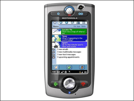 这是摩托罗拉公司近日出品的一款新型3G智能手机,并向下兼容普通的GSM网络,装载Symbian 7.0/UIQ 2.1操作系统,显示屏采用UIQ标准的208×320分辨率触摸屏;支持Java,蓝牙,扩展卡,USB端口,MP3/MPEG4播放,Word/Excel/PowerPoint/Adobe PDF文档浏览。