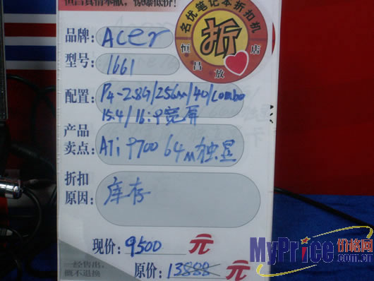 导购小姐介绍:这些折扣机型并不存在质量问题,只是一些停产或过时以及一些尾货,但是同样享受厂家提供的各类售后服务。