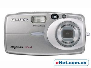 三星U-CA4,410万像素CCD,3倍光学变焦,4种数字影像特效,支持MPEG4动态录像,数字录音笔功能,其中动态影音拍摄和数码录音均不限时间,依据记忆卡的大小而定,目前价格降到了1999元。