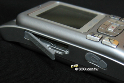 MP100 的 miniSD 卡插槽位在机身左侧,并且设计一软塞保护,可避免灰尘或误触插槽。