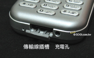 充电孔以及传输线插槽,安排在手机底部。MP100 的充电孔不同于一般手机位于底部的正中央,旁边的小洞才是真正的充电处。