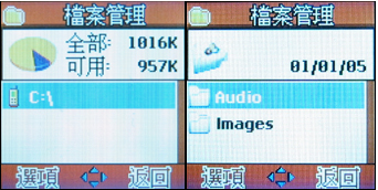 MP100 也拥有档案管理功能,当使用 miniSD 卡时,可以利用此功能了解可用空间还有多少,也可以清楚的知道手机中可用的硬碟空间还剩多少。这样一来,就能够有效的利用 MP100 来储存档案与储存多媒体档案了。