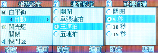 MP100 的拍照部分,没有特殊效果或是相框的趣味特效,但拥有「多连拍」以及「延迟拍摄」,你可以依照你需要来作设定。此外,相机设定中还有「白平衡」、「闪光灯」、「快门音效」、「曝光补偿」、「夜拍模式」、「避免闪烁」,种种设定功能,就是要让你无论在何种环境下,都能拍出最完美的照片。