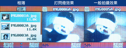 MP100 的屏幕为 4096 色 CSTN,分辨率 128 X128 pixels。可能是材质以及色彩度的关系,从 MP100 欣赏照片时,若画面的色彩及清晰度还可以再加强,就更棒罗!由图中可以比较打闪光以及没有打闪光灯拍照的差别。