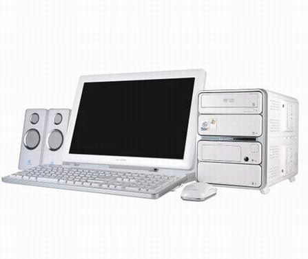 在性能配置上,其实已经不怎么受到关注了,P4 2.4C、256内存、80G硬盘、ATI Radeon 9200。值得一提的是其配备的17寸显示器,无论是外观还是效果都相当不错。加上同样为白色的键盘鼠标,整体外观还是挺时尚高贵的。软件方面,这个PC也有其特色,就是采用了双系统,一个是大家都熟悉的Windows操作系统了,另一个是其自行研发的系统,可以进行方便的影音播放等功能,娱乐PC的头衔也能戴到它的头上。