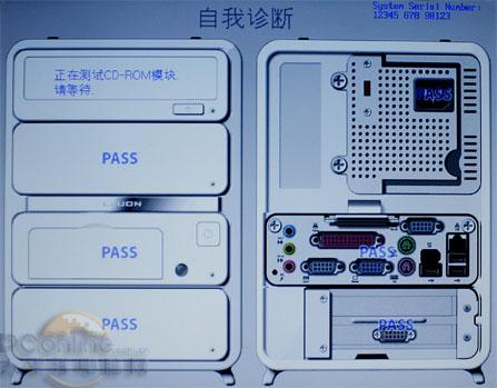 这个三宝的机子另一个创新的地方就是其可以自行检测硬件问题,而且是按其模块化来进行检测的,可以独立地检测每一个模块是否有问题。看下图,检测没事的模块就有PASS的字样,看起来有点儿新鲜吧?这就是个性化了,尽管实用性受到不少朋友的抨击。