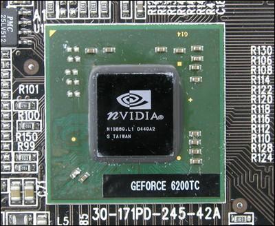 Geforce 6200TC是目前PCIE显卡的普及亮点,采用了Turbo Cache技术的铭?6200TC能够共享系统内存带宽,因而显卡将搭配更少的本地显存,这样的做法明显可以节约成本。而对于铭?6200TC来说,其完全继承了NV4X的先进架构,采用TSMC 110NM制程,完整支持DirectX9.0C,这些规格跟基于NV43V的GF6200完全是一样的。