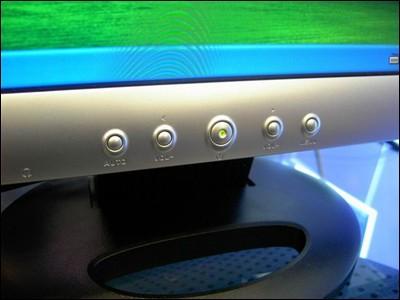 呈一字型排列的调节按钮均匀地分布在显示器的正下方,调节按钮的两边则为内置音箱,如果用户对音效要求不高的话,可以不必再花额外的资金去添置单独的音箱产品了。