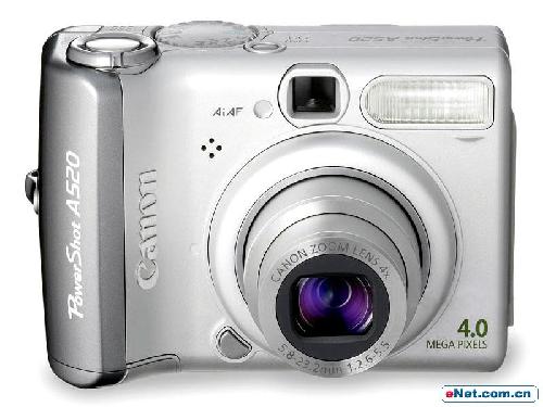下面是A520,A520仍然采用了1.8英寸的大LCD显示屏,用户可以方便的预览和浏览图片.佳能特有的DIGIC成像处理器为您方便快捷的拍摄清晰、生动的高质量图片提供了保证.由于在一些关键元件和电路设计上进行了改进,A520的功耗进一步降低,使用2节AA电池就能提供和之前版本使用4节AA电池一样的拍摄时间.PowerShot A520具有9点AiAF智能对焦系统以及多达13种的拍摄模式,包括5种标准拍摄模式和8种附加的拍摄模式,在附加拍摄模式中还新增加了夜景快照、小孩\宠物两种新的拍摄模式,使用这些拍摄模式,即使菜鸟也能随心所欲拍摄满意的图片.佳能机一向朴实实用,在性价比上作的也是恰到好处,相信A510/A520必定会再度掀起一波竞争狂潮!