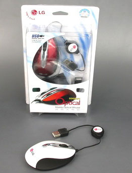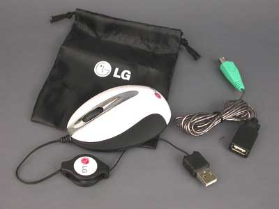在LG前些日子推出的一系列产品当中,这款产品具有属于较为抢眼的一款。尽管设计初衷是为了笔记本而设计。自然也拥有了“小”的特点,非常合适MM,或者手小的朋友,相比市场中其他的杂牌产品质量要明显好的多。这款鼠标的外观也比较玲珑,时尚美观,黑白的配色,在任何的时代也都不会让人觉得比较老土。产品整体人体工程学设计,最有特点的就是他的收线功能,可以方便携带。附送的产品也非常的丰富,由于自身为笔记本设计,70厘米的自身线缆对于台式机而言明显短了一些。所以这点厂商考虑的也比较周到,除了附送了一个便携袋之外,还有一个USB转PS/2,1米2长的延长线,有了这条线在台式机上使用就不成为问题了,获得了最大的兼容性。
