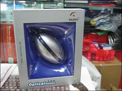 可以说这款鼠标时尚的外观已经成为经典之一,受到很多追求高品位和时尚的朋友青睐。不过笔者今天却在市场上发现了一款名为“黄金眼”的鼠标,外观竟然跟“光学星光鲨”一模一样!如果不看外包装,普通消费者很难辩认出来……金属质感的鼠标主体、晶莹通透的光带……竟然一点都没改动,直接就照搬过来了!(汗……真强)
