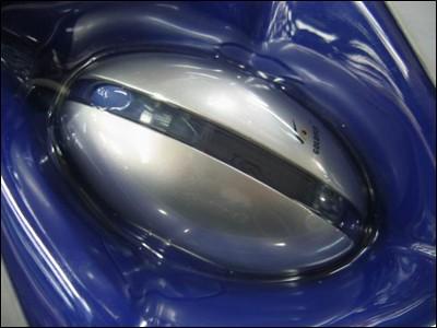 熟悉鼠标市场的朋友都知道,著名“大腕”微软曾在不久前推出了“光学星光鲨”(Optical Mouse Stark)鼠标。靓丽个性的造型可谓经典??半球形的设计,中间一条直贯的光带(分为蓝色版和红色版)把鼠标分割为左右对称的两半。整个鼠标采用银灰色设计,连鼠标线也一样。在黑暗的环境中,中间的光带会发出宝石蓝或翡翠红的荧光。而且在工作时,光带更跟随鼠标运动闪出璀璨光芒,仿佛蓝色或红色激光闪烁迷离。