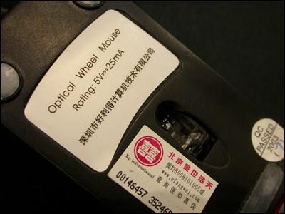 尽管这个鼠标是个彻头彻尾的仿制品,但小编在鼠标底部却发现了一个防伪标签,免费防伪电话、查询网址和产品编号一应俱全。不知此举是为了以假乱真,还是防止其他模仿者不要仿制“他”的迷你晶貂?