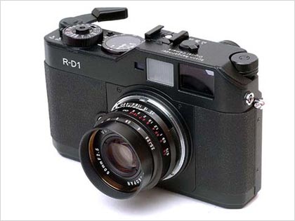 爱普生R-D1在外观上和日本确善能公司推出的传统旁轴相机Bessa-R2极为相似,外观尺寸为142×89×40mm。机身采用黑色的全金属外壳,并有皮质外包,再加上各种仿传统旁轴相机设计的调节盘和拔杆,看起来非常复古。R-D1采用610万像素的APS-C型CCD,另外,和数码单反一样,她采用可更换镜头设计,焦距折算倍率为1.53倍。卡口为徕卡EM口,一方面,它可以使用徕卡M卡口镜头,另外它还可以通过推出的附件外接徕卡L螺口镜头。大家知道,现在公认成像质量最好的镜头就是徕卡M卡口和L螺口镜头了。在取景对焦方面,R-D1采用旁轴取景,联动测距对焦,机身配备28/35/50mm三种框线。她具有CCD-RAW无压缩文件格式,其他功能基本上和高端的单反相机相仿。R-D1的LCD显示屏为2.0英寸,分辨率为23.5万象素,它可以进行多角度旋转。这个LCD显示屏和数码单方相机的LCD一样,都是只能用于照片浏览以及相机参数的设定。另外,这款机型使用专用锂电,存储卡为SD/MMC卡。