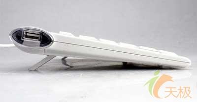 就是非常抢眼的,至少对不少MM而言充满了诱惑力。其设计风格与苹果的配件并无太大的差异。白色的主色调,透明的外壳。都给这款键盘笼罩了一层高贵的美。这款键盘同样也没有多余的多媒体按键,整体超薄设计。键盘的手感也一如既往的出色。采用了本本键盘结构,至于内部使用了“又”结构还是其他这个笔者不得而知。但至少对于习惯于本本的键盘的朋友这款键盘也是不错的。当然这款键盘除了外观还有一大亮点。键盘本身提供了一个两口的USB HUB,分别设计在了键盘的左右两边。