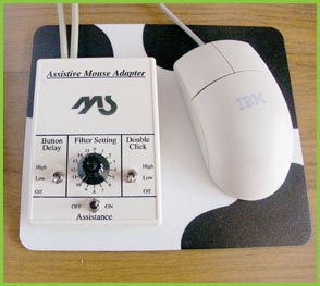 IBM公司近日开发出了面向自发性手抖动用户的鼠标适配器。该鼠标适配器采用了英国Montrose Secam有限公司提供的技术专利,产品名称为Assistive Mouse Adapter(鼠标适配器),预计销售价格在100美元以下。