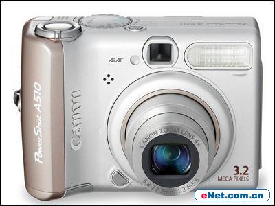 A510采用了1/2.7英寸CCD,有效像素320万,佳能4倍光学变焦镜头,焦段35~140mm,最大光圈值F2.6~F5.5,采用了1.8英寸11.5万像素液晶显示屏。采用了佳能DIGIC影像处理芯片,9点智能对焦系统,支持全手动操作,具备20种情景模式,支持动态影像,SD/MMC卡存储,2节AA电池供电。