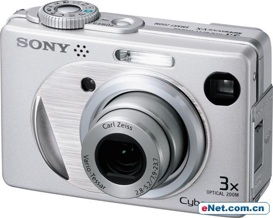 720万象素的CCD,卡尔蔡司4倍光学变焦镜头 超大2.5英寸12万像素LCD屏幕 存储格式又JPEG、TIFF和RAW格式 连拍模式下最快以每秒2张的速度连拍8张 640×480/30fps有声视频,长度只取决于卡的容量 自动,程序AE,快门优先,光圈优先,全手动,7种场景拍摄模式 索尼独有的夜景构图拍摄模式 5区多点自动对焦,自动或手动选择 USB2.0高速传输 双卡存储: Memory Stick Pro 和 CF卡 缺点就是开机速度不够快,大约需要4秒左右。
