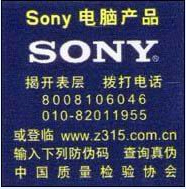 标签由两层贴纸构成,揭开标签表层在第二层贴纸上能看见防伪码,但水货和假货上的标签没有防伪码可查,购买后应立即揭开表层,拨打防伪标签上的免费电话8008106046,查询购买产品的真伪。此外,SONY的行货都贴有"Sony原装 力富代理"的防伪标签。这是鉴别行货、水货和假货的重要方法(特别提醒:假货水货也同样贴上了防伪商标)。