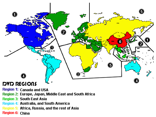 DVD影碟所依赖的防盗版主要有区码保护和CSS(内容扰乱系统)等,前者是将全世界分为6个区域,对应的碟片和碟机都含有相应的区码保护不能混用。也就是说从理论上讲,我们从美国买回的DVD是不能在中国的碟机上面播放的,因为二者带有不同的区码。