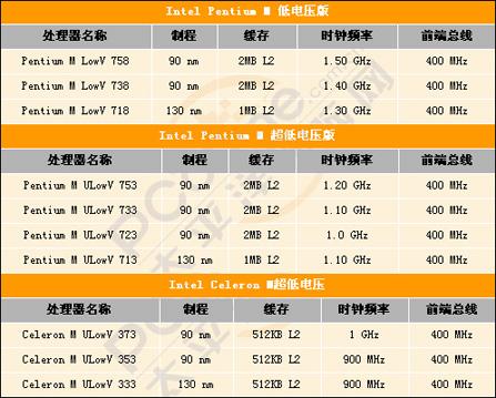 各类英特尔移 动处理器一览