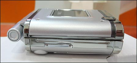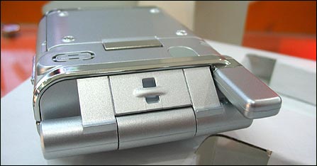 N919的转轴部分设计比较古怪,翻盖的转轴竟然整个暴露在外部,这样就增大了翻盖打开的角度及增加了翻盖打开情况下的机身长度,相信这种设计是为了更适合男性用户。