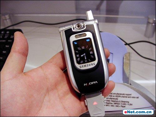 同样参与了CeBIT展出的HSDPA也展示了它的风采。2.1GHz带宽的频率,同时也支持GSM。下载速度最大达到1.8MBps,内置RealOne软件,可以观看MPEG-4格式和H.264/H.的动画,可以支持MP3/AAC/AAC+等音乐格式。