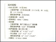 音箱的RMS功率为70W,这和Z-5500的500W功率相比简直就是小巫见大巫,差得实在太远。不过,相对于现在大多数50W不到的5.1音箱来说,70W实际功率已经显得太多。其中,5个卫星音箱占了45W,而低音炮则占了25W,这比某些5.1音箱的总合还高。