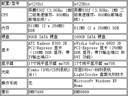 同联想一样,惠普在高端专业游戏阵营产品丰富,特别是其中的w系列产品,专为游戏和多媒体打造。其中w1218cl 和w1238cn非常具有选择价值。 前者售价为7499,后者则为9999。具体配置笔者整理成表格: