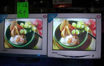 图为:市场上常见的假三星显示器