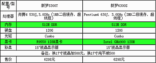 两款新梦从价格及大概配置上似乎极为相似,不过事实上二者是两个不同朝代的产品。最明显的是处理器和主板规格都有非常大的区别。新梦6300S是INTEL最新架构和最新工艺的处理器,不过在现实中,其性能值得商榷。现在能确定的优势是其支持64位技术,支持节电技术和防止溢出(解读为具有防毒功能)。其中可能比较见成效的是节电技术,它使得CPU可以根据操作对资源的需求调节CPU的使用能效,从而有效降低功耗、节约能源。另外这两款机器在显卡方面还是比较不对称的。INTEL在其LGA775架构中的配置中捆绑了其第三代图形核芯GMA900显示芯片,其GPU工作频率为333MHz,内置4条像素流水线,可提供1.3GP/s的像素和纹理填充率。芯片集成400MHz DAC(数模转换器件),最高可支持2048x1536分辨率。但INTEL毕竟不是专业的显卡生产商,尽管其诸多参数高端,但其性能仍然仅仅在GFX5200左右。对于这两款显卡,我们觉得有鸡肋之嫌。但笔者认为基本能够达到现行主流游戏的水平,毕竟现在游戏在3D方面还有很长的路需要跋涉。