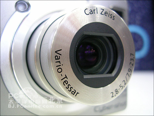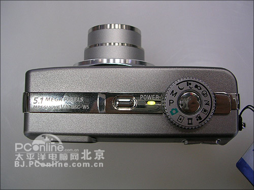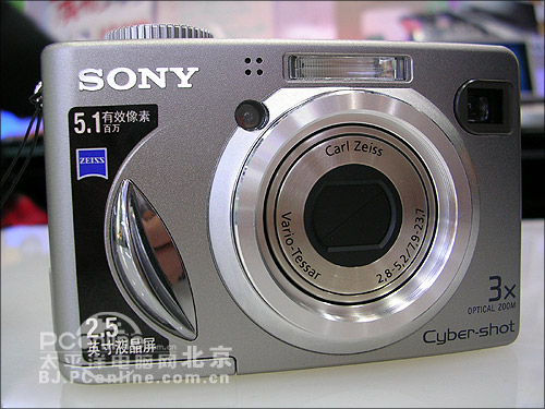 从外观上看,W5感觉比W1的机身厚了一些,和W1有黑、银灰两种颜色不同的是,W5只有银灰色一种,不过在机身侧加了金属条,手感有一些变化。W5依然采用了1/1.8英寸500万像素的CCD,3倍光学变焦卡尔*蔡司镜头,和W1没有区别。数码变焦方面,W5有些缩水,由W1的6倍减为2倍,好在数码变焦一般也不使用。