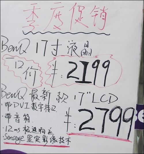 另一款型号为FP71E,支持1280x1024的最佳分辨率,12MS的响应速度,160度的可视角,及前银后黑/D-Sub/DVI-D接口/最大水平扫描频率81KHz/最大垂直扫描频率76/频宽135MHz。网上报价3399,现商家搞活动促销已经降到2799,可谓是狂降600,有点疯狂。