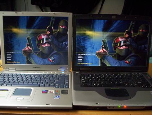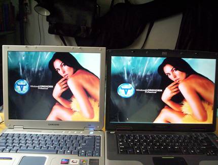 上图中右边本本的图像因为宽屏的关系明显失真( MM 发胖)