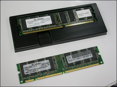 Infineon(英飞凌)DDR内存采用了银色全金属封包装,包装上印有德国科技和Infineon(英飞凌)的字样。当然,其采用的是Infineon原厂编号为HYB250256800CE-6的内存颗粒。目前市场上的Infineon(英飞凌)DDR系列的内存较少,因此,对消费者来说选择的余地就要少了一些。不过,有兴趣的朋友还是可以关注一下的,毕竟Infineon(英飞凌)的品质还是值得信赖的。