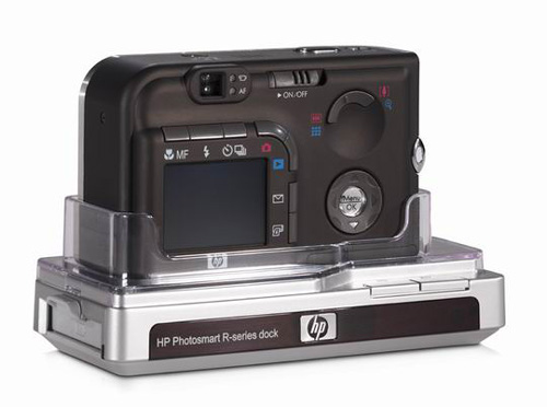 现在的新款时尚机几乎都配备了底座,不过R606和707的底座功能非常强大。你可以用它来给相机充电,把照片上传到电脑里,在电视上播放照片。惠普极有想象力地给底座配备了遥控器,使用遥控器可以浏览照片,操作菜单,给要打印的照片做标签,甚至还有变焦和滚屏功能。R606和707还配有了遥控器,有了它你就可以舒服的坐在沙发上尽情享受在电视上播放的照片和视频了。