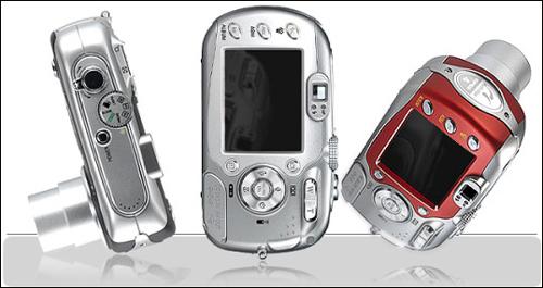 这款型号为Digimax V10的机器拥有酒红色、靛蓝色和银白色供购买者选择。