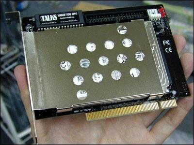 什么?不相信?告诉大家,这个东西真真切切、的的确确,如假包换的PCI接口接在电脑上的硬盘。是一家日本公司的杰作,称为PCI DISK CARD,可以直接插在PCI槽上,十分神奇。不过这个速度能否得到保证可不敢说(汗!不得不佩服日本人的想象力)。