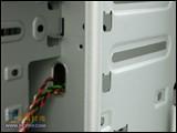 同时机箱内部的各个边角部分都作了折边处理,最大限度的保护了装机时使用者的人身安全,不过遗憾的是没有采用免螺丝设计。机箱后部一共设计了两个8cm的风扇位,产品本身已经附带了一个,保证系统的散热能力。