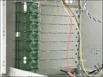 板卡插槽部分也全部是免螺丝的,但是这种设计在安装双槽板卡的时候,可能会有一些不便。主板安装方面,这款产品采用的是有机材料制作的保龄球形的垫柱,当用户以适当的力量水平压下主板的时候,主板将被牢牢的固定到机箱上,而膨胀柱材料的柔韧性保障了在你想取下主板的时候也十分轻松。