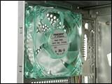 而在散热方面,由于后板和前板分别预装了一只90mm和120mm滚珠轴承风扇,配合Intel官方推荐38度机箱规范中的导风管,充分利用空气动力学原理进行整体散热,节能的同时确保系统稳定,CPU表面温度经测试稳定在38度左右。