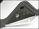 圆形电源开关位于大“X”里的那个小“X”的中间,电源灯和硬盘灯则分别位于小“X”的两个顶端,而常用的前置USB、音频输出接口和耳机接口则隐藏在下方的白色三角门后面,使用时打开三角门就可以。